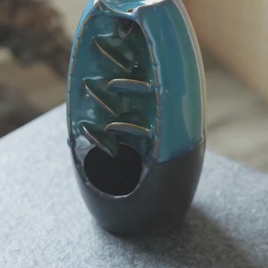 Väck dina sinnen och balansera dina chakran med denna exklusiva rökelsebrännare i handgjord keramik. Med ett mjukt fall av rök i en refluxrörelse skapas en visuell meditation som lugnar sinnet och öppnar energiflödet i kroppen.